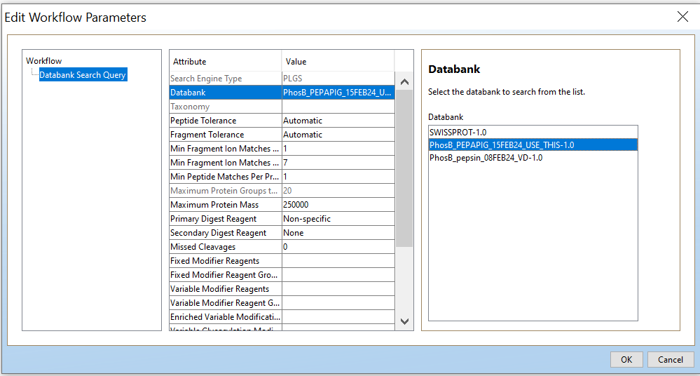In order to make workflow parameters in PLGS (see step 4.4) you need to add your FASTA file to the PLGS libary: