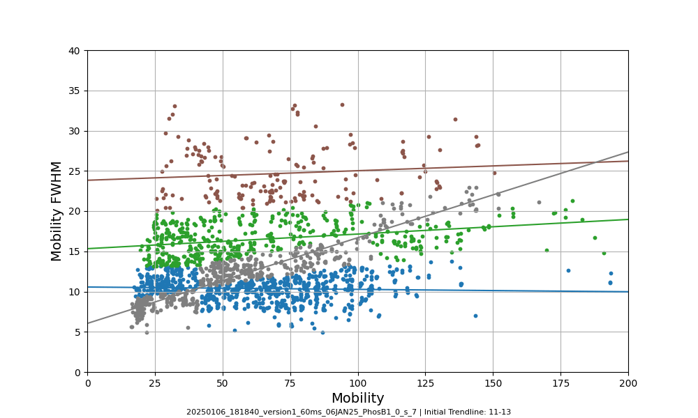 Use this tool to create mobility vs. mobility FWHM graphs and to predict trendlines for your data.